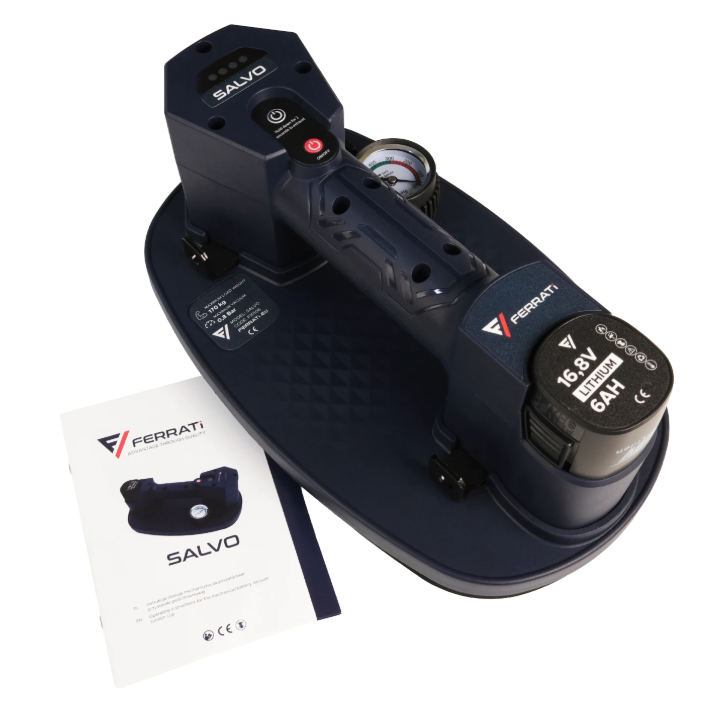 Przyssawka próżniowa automatyczna SALVO to w pełni automatyczny chwytak próżniowy o dużej sile udźwigu to najbardziej zaawansowane narzędzie wspomagające transportowanie. Wyposażony w zaawansowaną elektronikę automatycznie monitoruje podciśnienie i w przypadku jego utraty pompa próżniowa jest wywoływana do czasu przywrócenia wymaganej wartości. Znacznie zwiększa to wydajność akumulatora oraz zapewnia bezpieczeństwo w trakcie przenoszenia. Pomiar ciśnienia i wagi odbywa się w czasie rzeczywistym wpływając pozytywnie na czas reakcji. Efektywnie wyzwalana pompa o wysokiej wydajności przepływu powietrza sprawia, że czas operacyjny do uzyskania pełnej nośności chwytaka jest stosunkowo krótki. Wielowarstwowa uszczelka próżniowa z gumy piankowej jest mocna i odporna na utratę podciśnienia, mocno przylega do wymagających powierzchni. Przyssawka próżniowa automatyczna SALVO dostarczana jest w praktycznej walizce, aby chronić i bezpiecznie transportować produkt.
