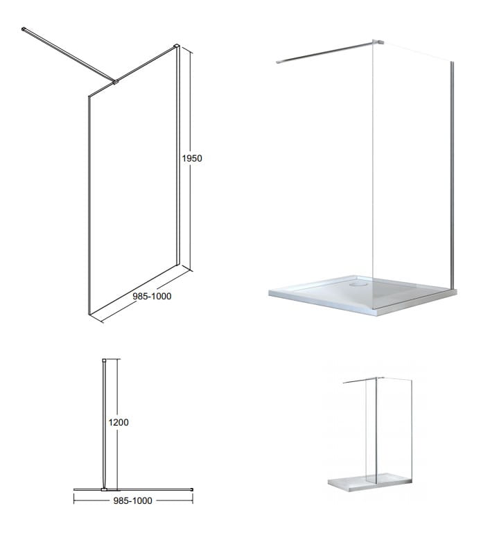 Ścianka prysznicowa Besco Aveo Black Walk-In 100x195 cm - dodatkowo 5% RABATU na kod BESCO5