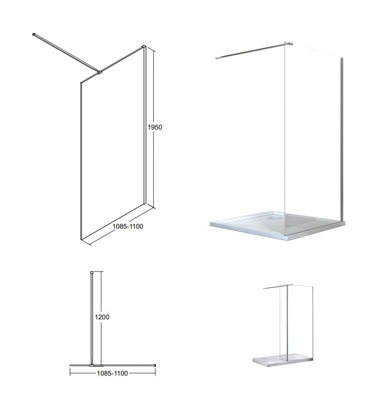 Ścianka prysznicowa Besco Aveo Black Walk-In 110x195 cm - dodatkowo 5% RABATU na kod BESCO5