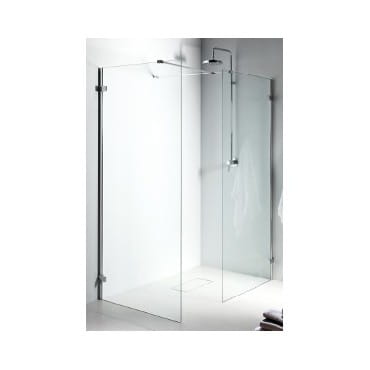 Wypełnienie ze szkła hartowanego 8 mm, okucia w kolorze chrom i profile srebrny połysk.