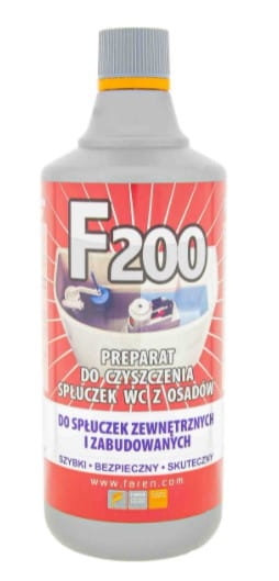Środek do czyszczenia osadów w toalecie Faren F200 1l przeznaczony jest do spłuczek zewnętrznych i wewnętrznych.