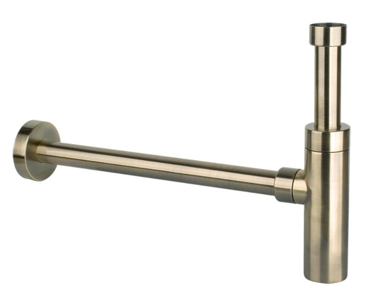Syfon umywalkowy wykonany z mosiądzu w wykończeniu antycznego mosiądzu.