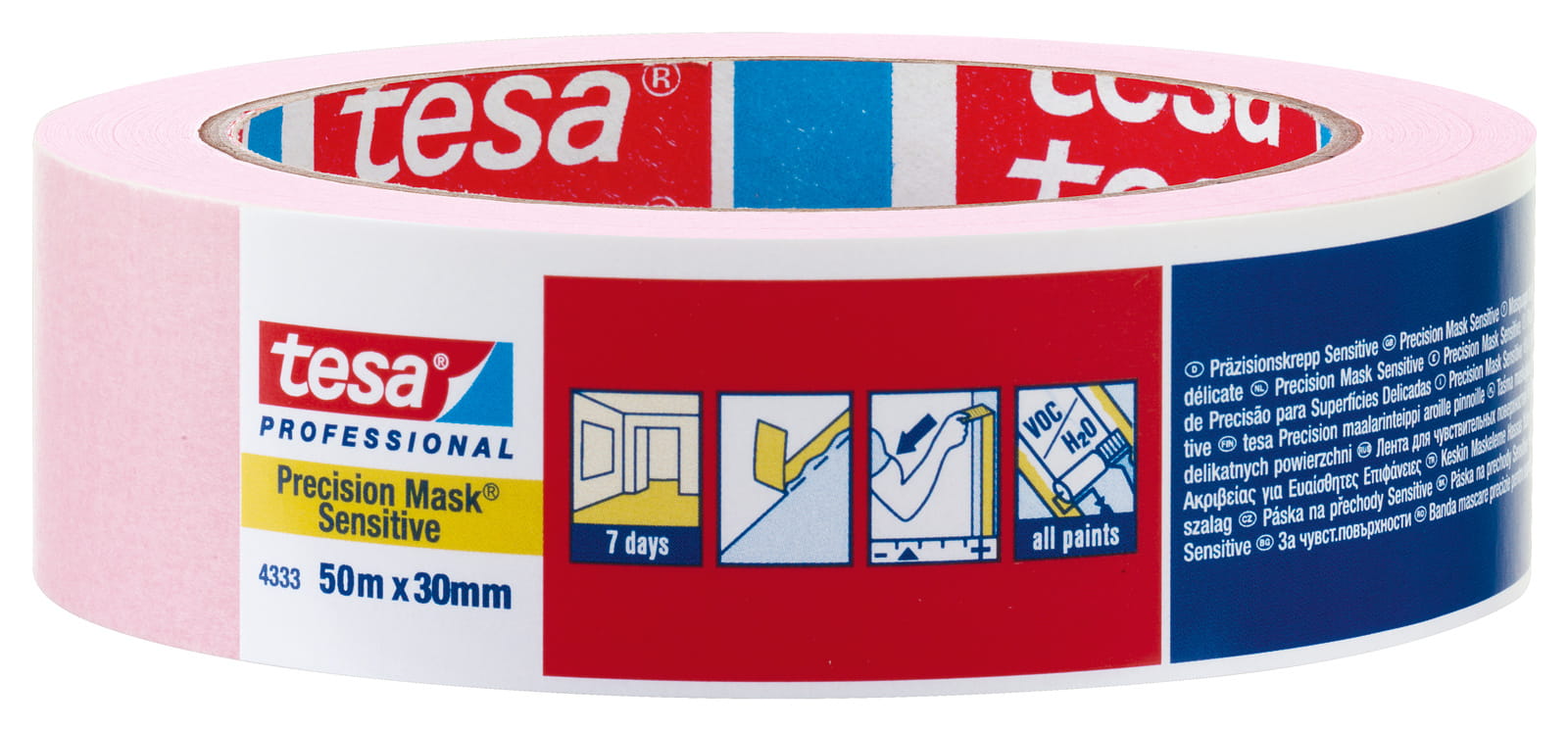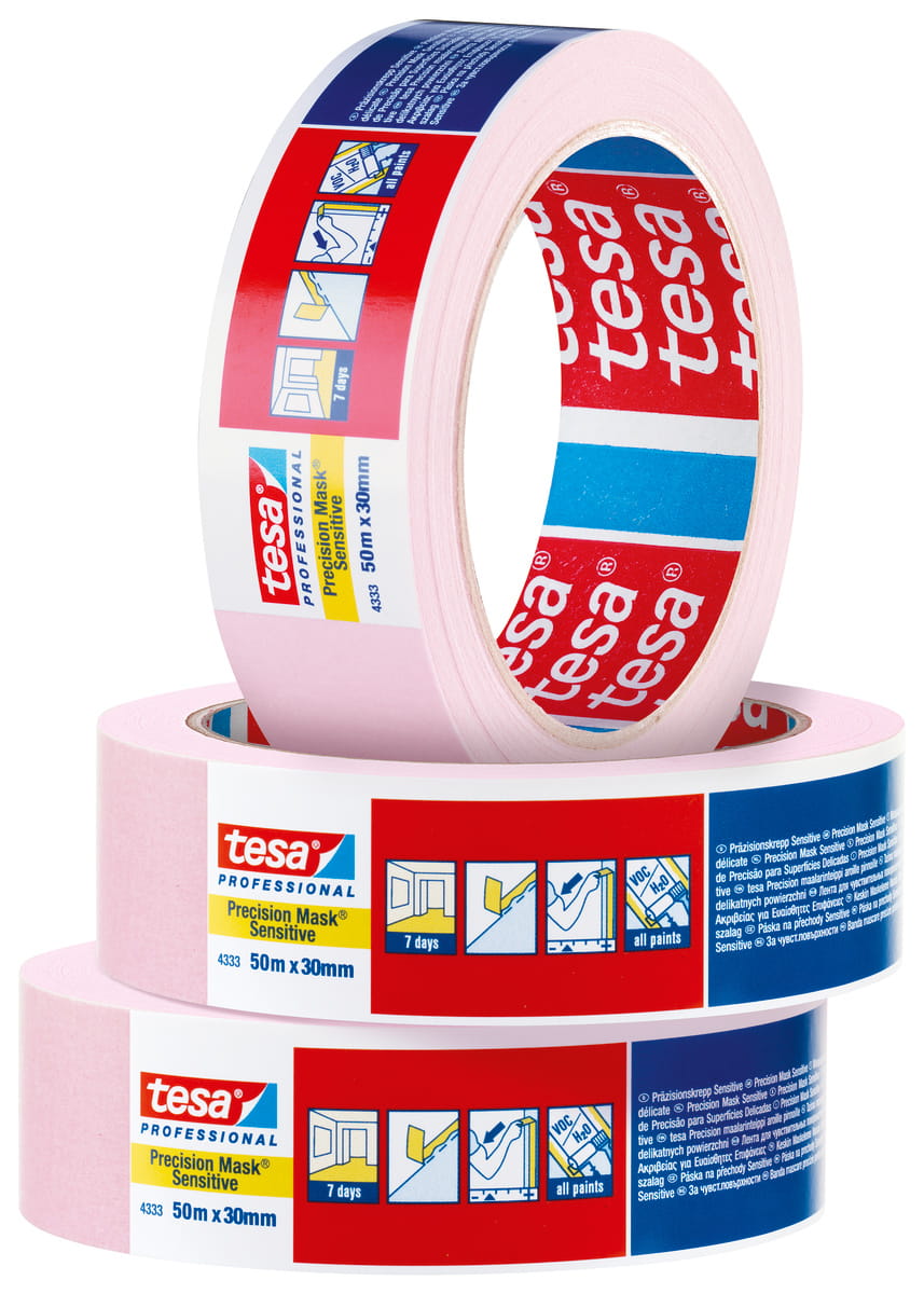 Profesjonalna taśma malarska tesa Precision Mask® 4333 idealna do delikatnych powierzchni – tapet, oklein i lakieru. Gwarantuje precyzję i ochronę przed uszkodzeniami.