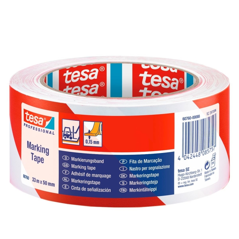 Taśma ostrzegawcza Tesa biało-czerwona 33m x 50mm