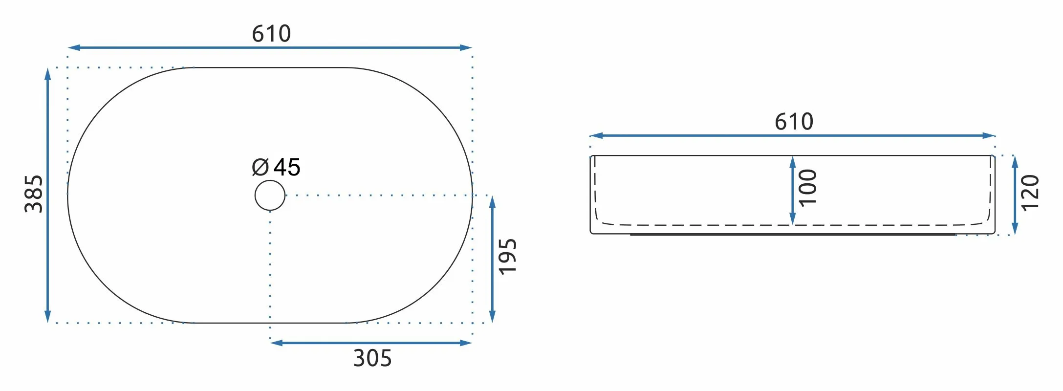 - Średnica otworu odpływowego: 45 mm