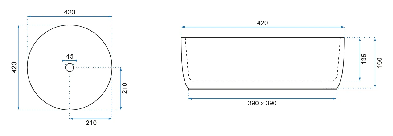 - Średnica otworu odpływowego: 45 mm