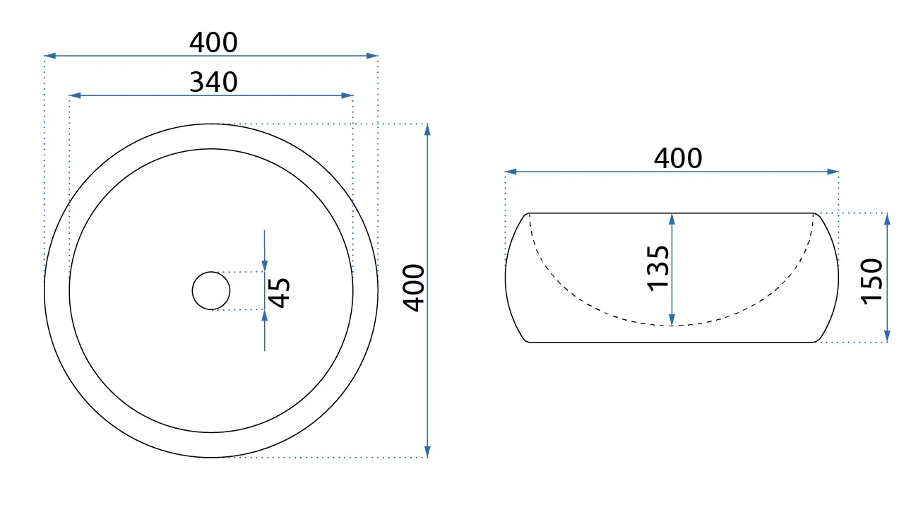 - Szerokość umywalki 400 mm