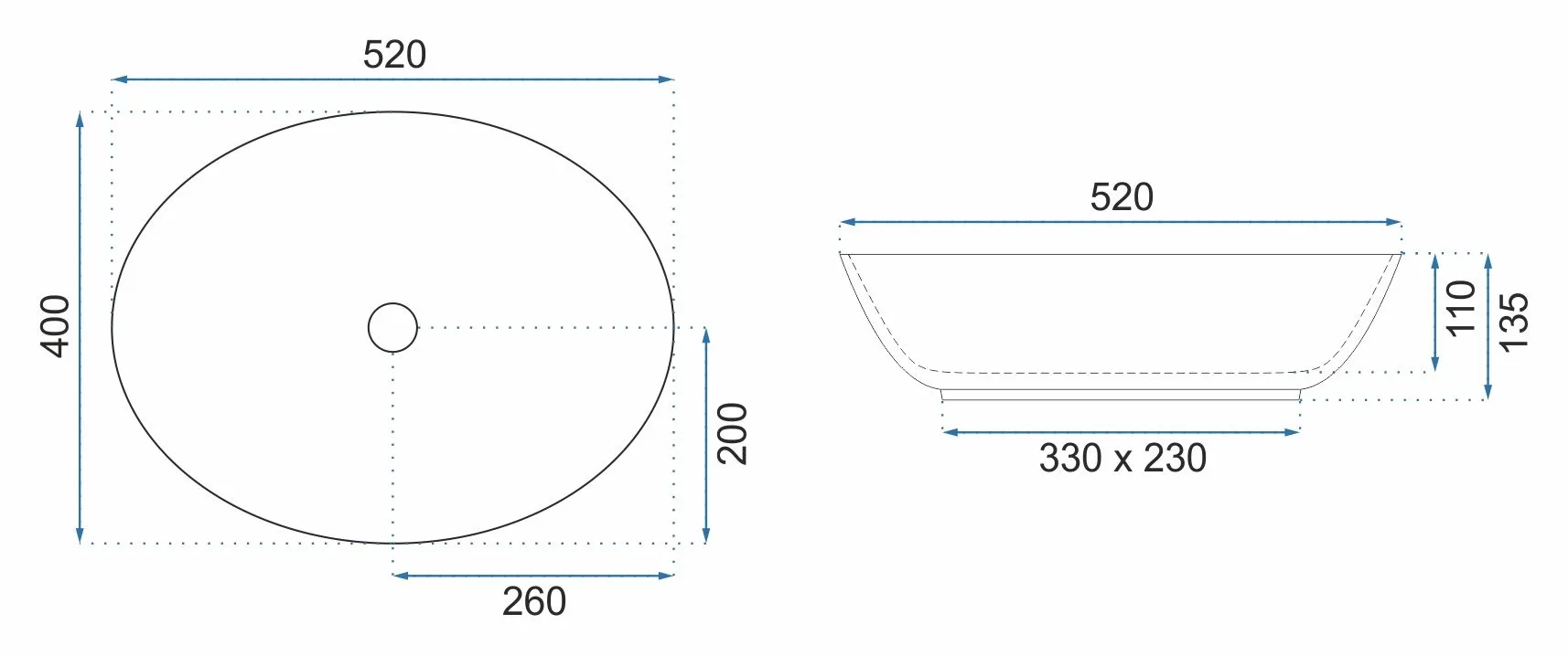 - Wysokość umywalki: 135 mm
