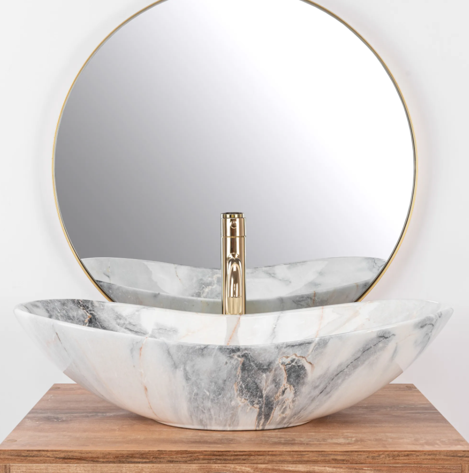 Dzięki technice w jakiej została wykonywana wierzchnia warstwa umywalki, każdy egzemplarz posiada niepowtarzalny i unikalny wzór. Efekt ten imituje naturalny kamień.