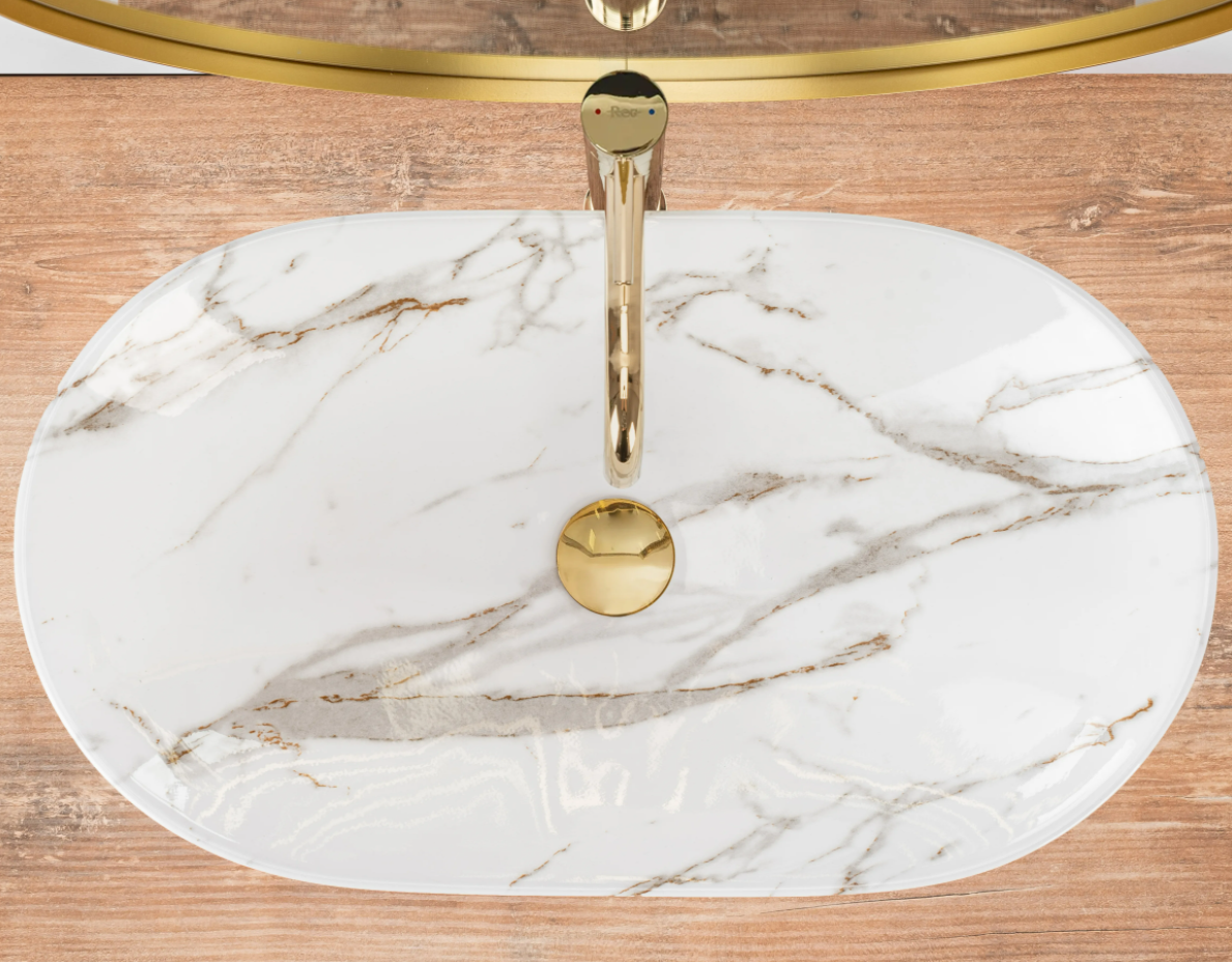 Dzięki technice w jakiej została wykonywana wierzchnia warstwa umywalki, każdy egzemplarz posiada niepowtarzalny i unikalny wzór. Efekt ten imituje naturalny kamień.