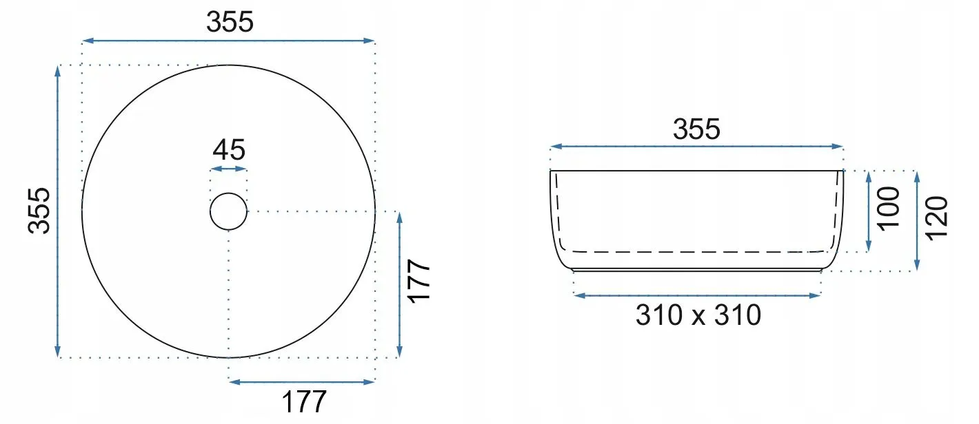 - Średnica otworu odpływowego 45 mm