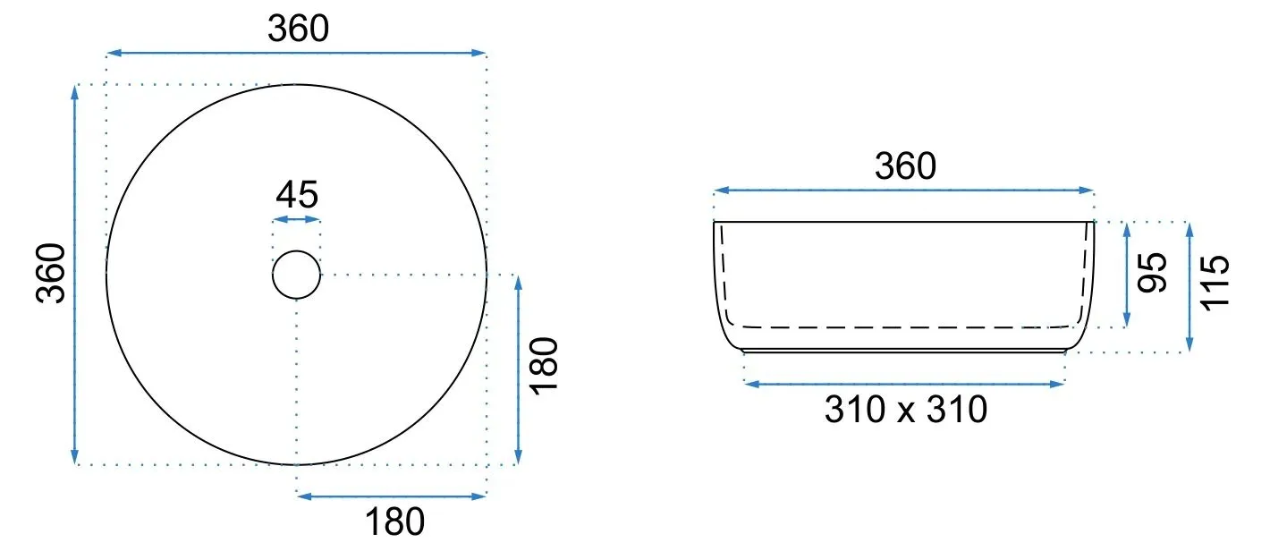 - Średnica otworu odpływowego: 45 mm