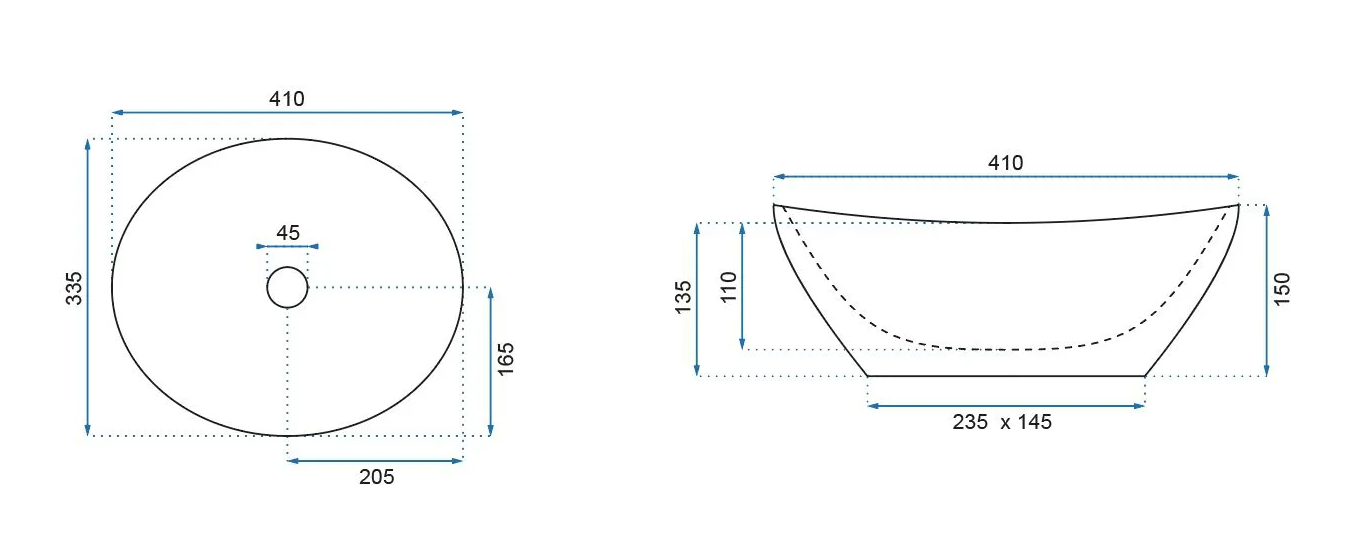 - Otwór odpływowy 45 mm