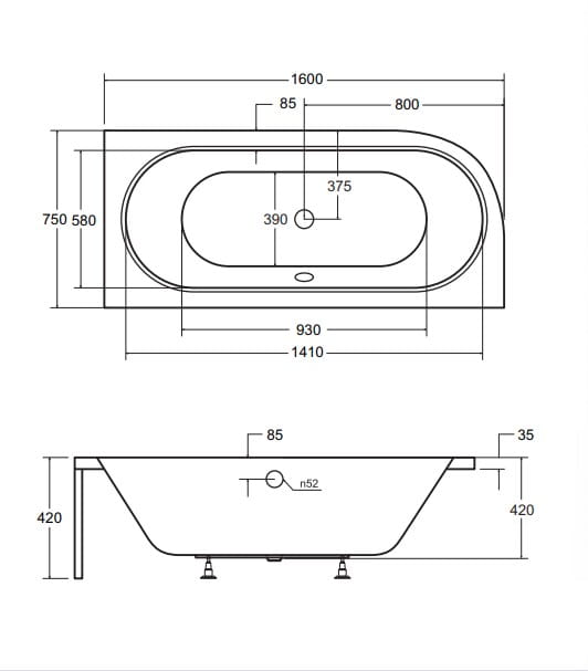 - Dłuższy bok 160 cm