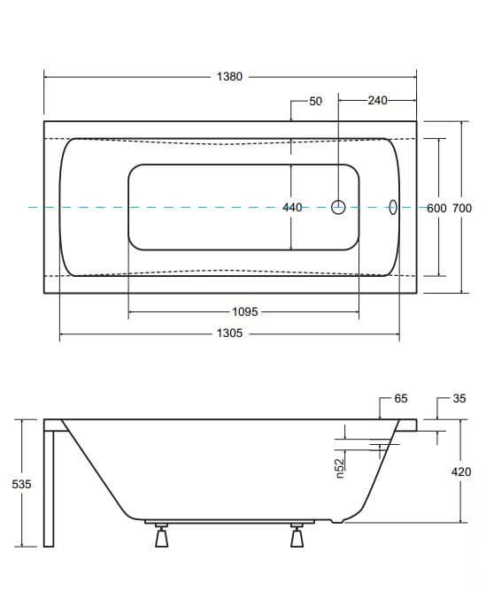 Prostokątna wanna wykonana z wysokiej jakości akrylu. Łatwa w montażu. Posiada właściwości antypoślizgowe oraz powłokę antybakteryjną. Zastosowany akryl utrzymuje długo ciepłą wodę wewnątrz wanny. Jest łatwa w utrzymaniu czystości. Ma stabilną konstrukcję i jest odporna na żółknięcie i zarysowania.