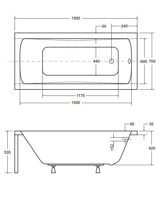 Prostokątna wanna wykonana z wysokiej jakości akrylu. Łatwa w montażu. Posiada właściwości antypoślizgowe oraz powłokę antybakteryjną. Zastosowany akryl utrzymuje długo ciepłą wodę wewnątrz wanny. Jest łatwa w utrzymaniu czystości. Ma stabilną konstrukcję i jest odporna na żółknięcie i zarysowania.