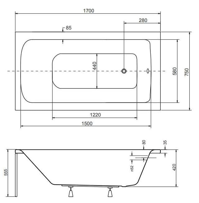 Wanna prostokątna Besco Talia Premium 170x75