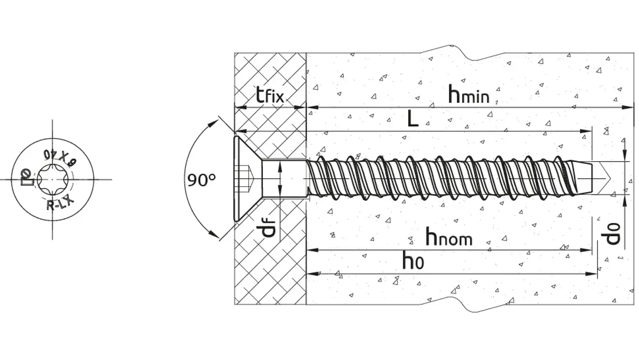 Wkręt do betonu z łbem stożkowym Rawlplug R-LX 6x100mm