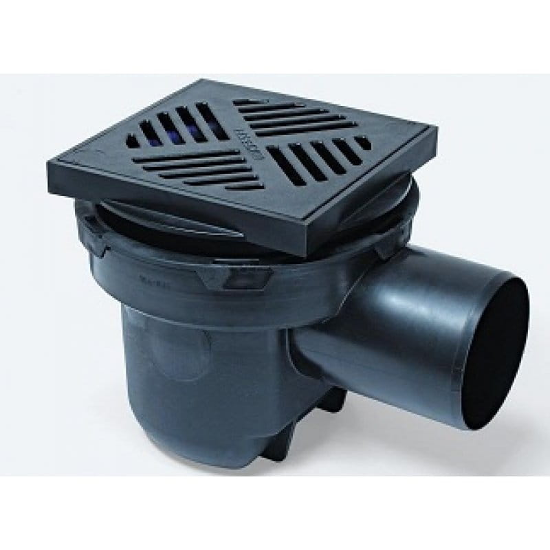 Wpust z separatorem cieczy lekkich KESSEL 52101 z tworzywa sztucznego DN 100, z zaworem zwrotnym dwuklapowym, ze zintegrowanym syfonem i osadnikiem, z rusztem szczelinowym, który jest wykonany z tworzywa sztucznego.