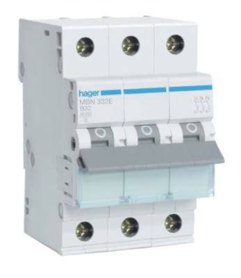 Wyłącznik nadprądowy 3P B 32A 6kA Hager MBN332E