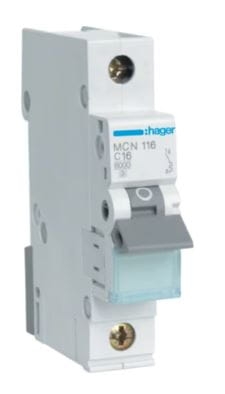 Wyłącznik nadprądowy 1P C 16A 6kA Hager MCN116E