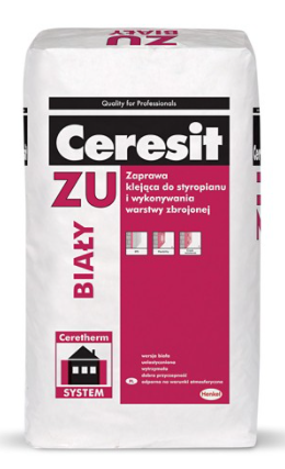 Zaprawa Ceresit ZU biały służy do ocieplania ścian zewnętrznych budynków metodą lekką-mokrą z zastosowaniem płyt styropianowych. Jest składnikiem złożonych systemów ocieplania ścian zewnętrznych (ETICS) budynków Ceresit Ceretherm. Zaprawa Ceresit ZU biały stosowana jest zarówno do mocowania płyt styropianowych, jak i do wykonywania warstwy zbrojonej siatka przy ocieplaniu budynków nowo wznoszonych, jak i poddawanych termomodernizacjii.