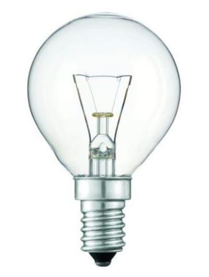 Żarówka halogenowa EcoClassic w kształcie kulki z trzonkiem E14, odpowiednik tradycyjnej żarówki o mocy 55 W.