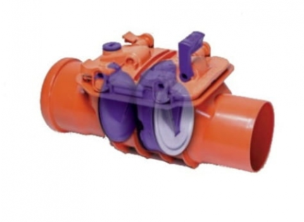 Zawór przeciwzalewowy dwuklapowy z ochroną przed gryzoniami Staufix Basic do ścieków bez fekaliów, z tworzywa sztucznego. Dwie klapy samoczynnie zamykające się, jedna z nich służy jako ręczne zamknięcie awaryjne. Jedna klapa wykonana ze stali nierdzewnej.