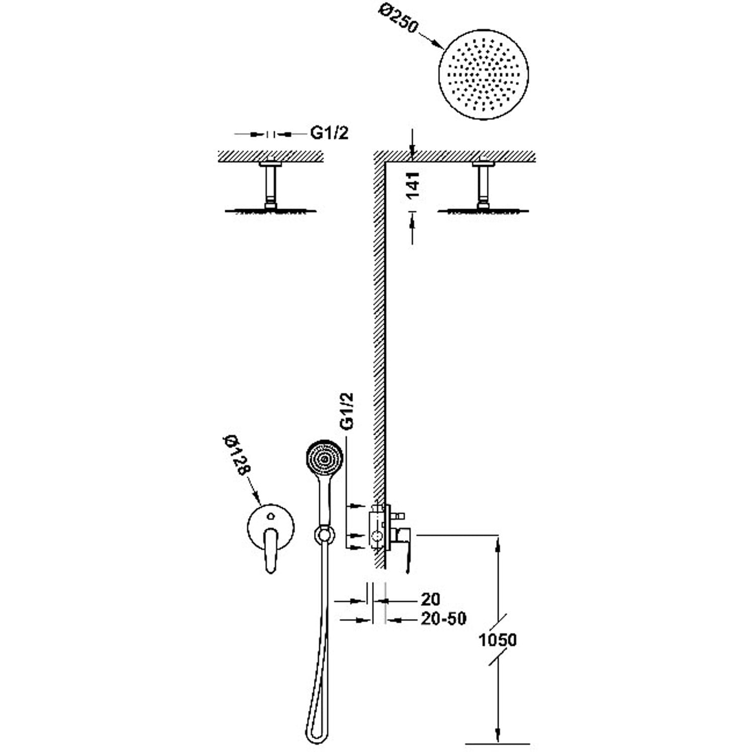 - Ramię sufitowe z obrotową deszczownicą ze stali nierdzewnej: Ø 250 mm
