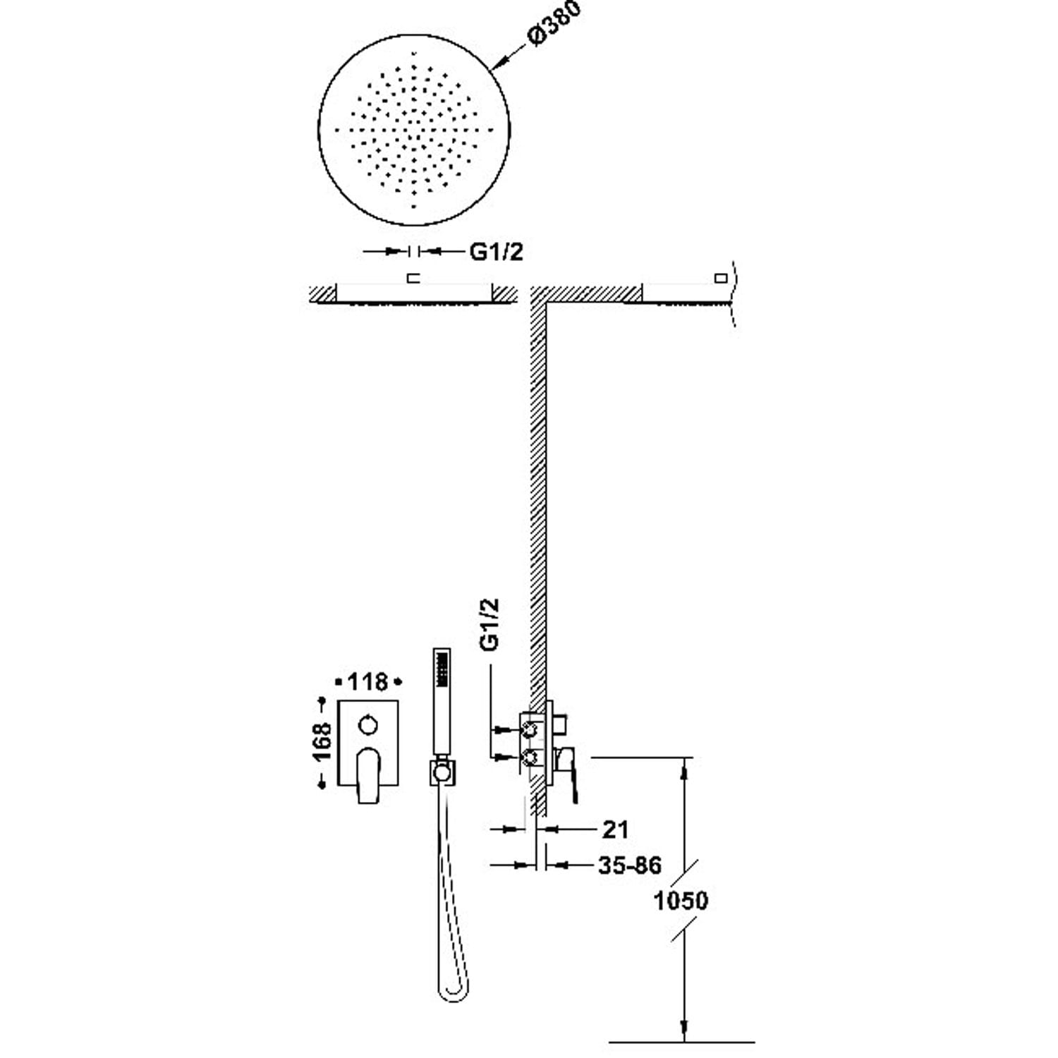 - Deszczownica podtynkowa sufitowa ze stali nierdzewnej: Ø 380 mm