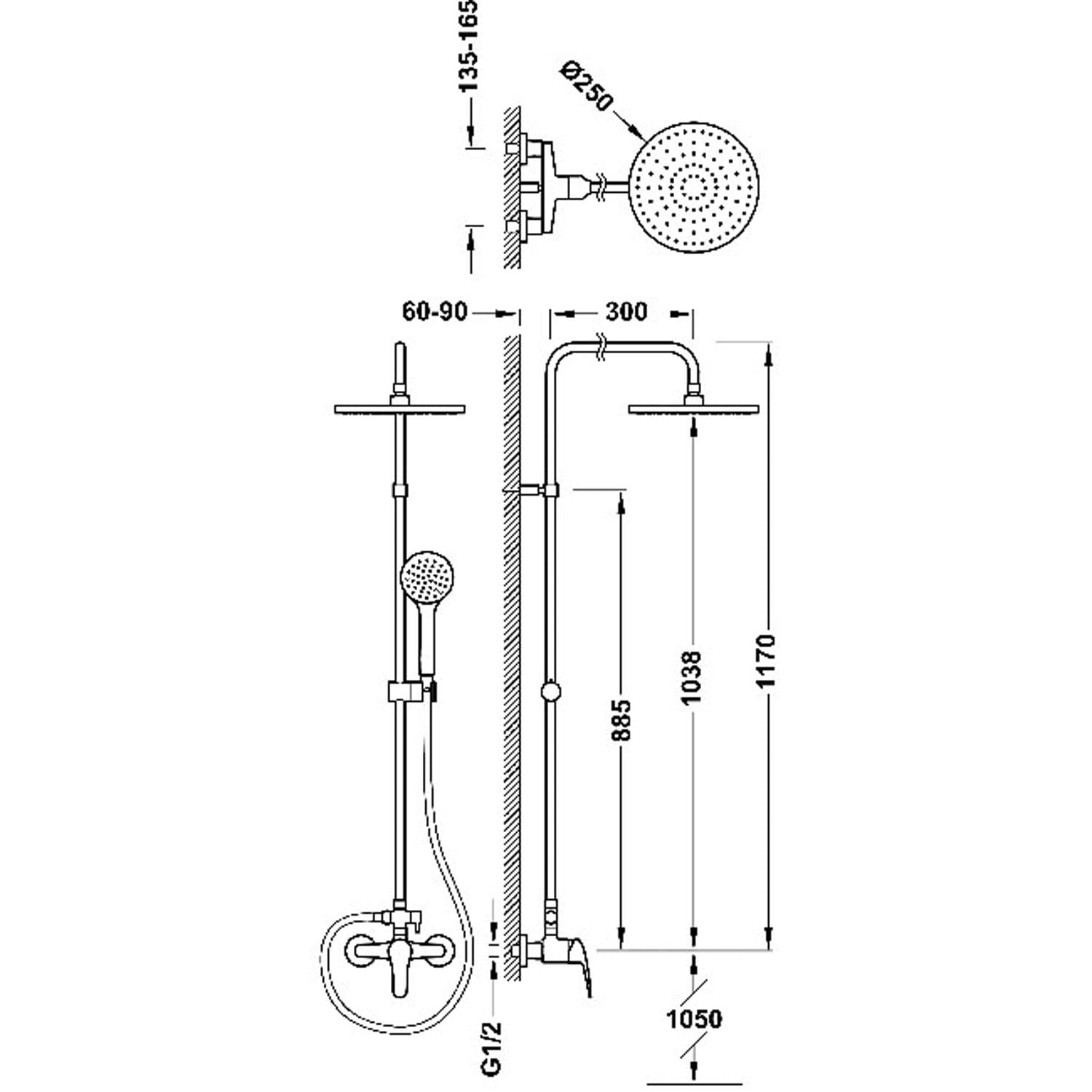 - Deszczownica obrotowa: Ø 250 mm