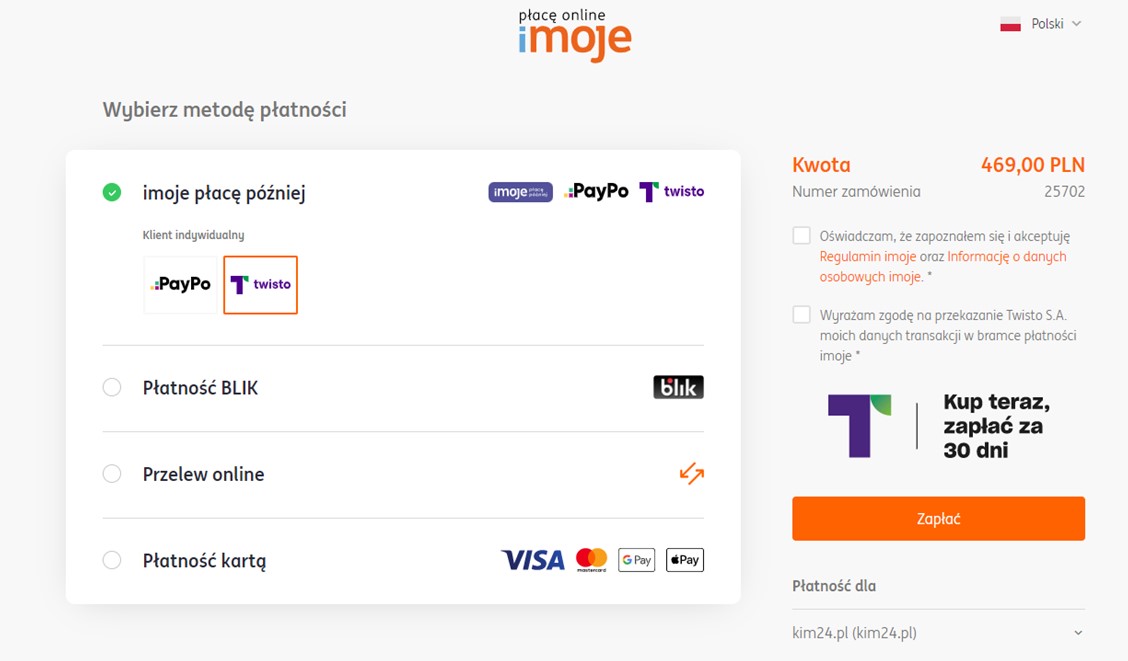 imoje płacę później Twisto.