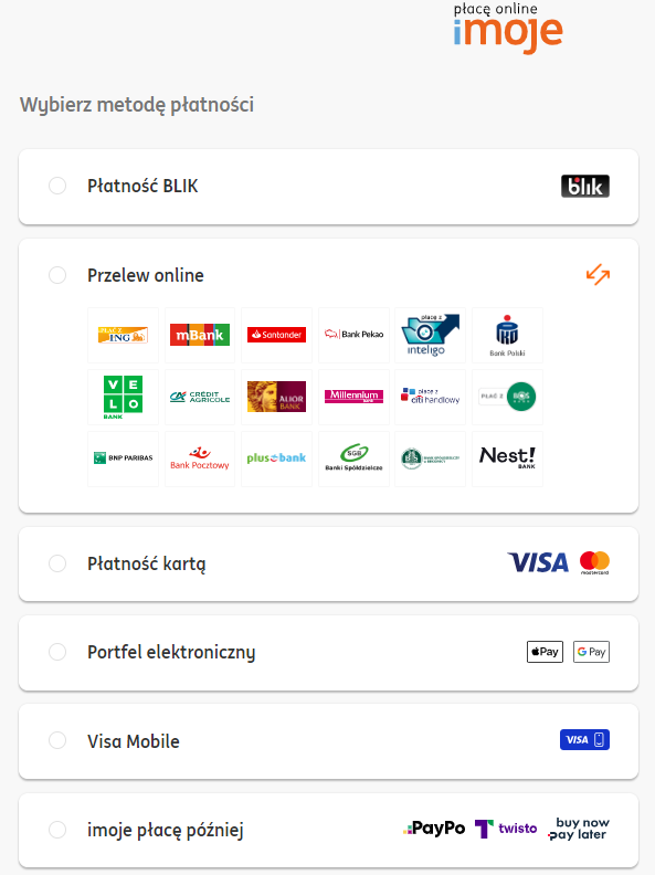 - płatności elektroniczne - szybka wpłata kartą, przelewem elektronicznym lub Blikiem obsługiwane przez: